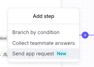 After the Collect inputs step, click the “+” button and select the Send app request step.