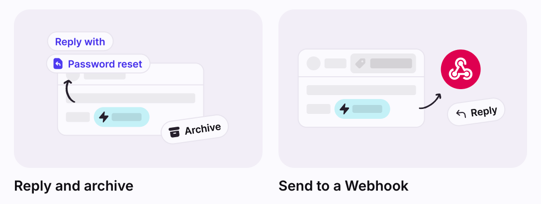 Example: When a message arrives in your inbox containing the keywords “password reset”, reply with the message template “Password reset instructions” and archive the conversation.