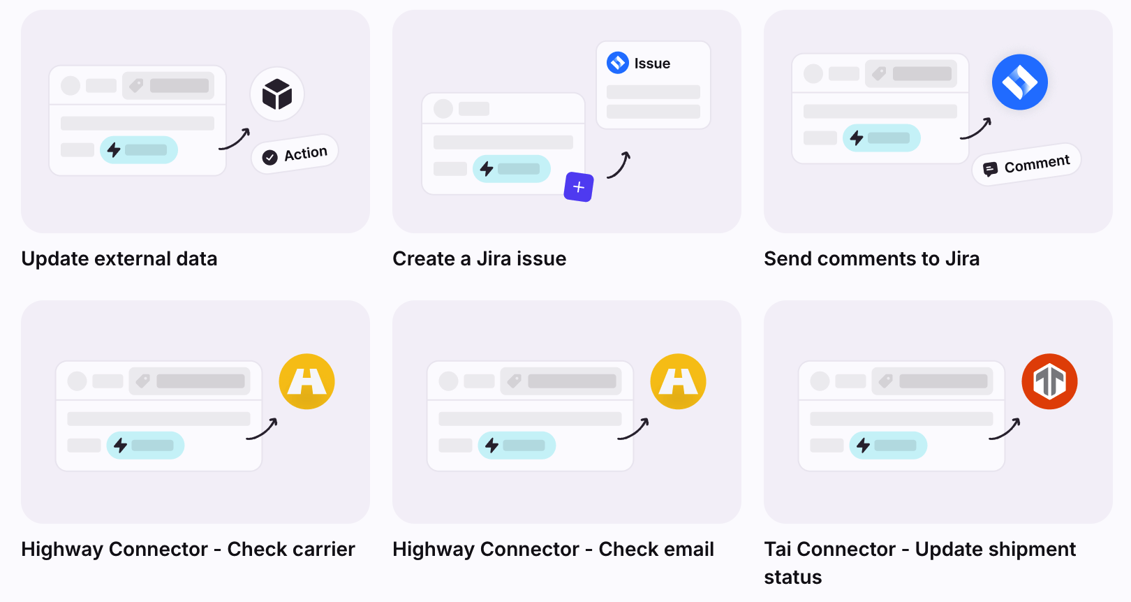 Send requests from Front to third-party applications such as CRMs or in-house tools. Use Front to trigger actions or updates in your other tools, saving time on app switching.