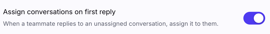 By default, this feature is turned on in channel settings, but admins have the option to disable it if you do not want conversations that don't have an assignee to be auto-assigned to the next teammate who replies.