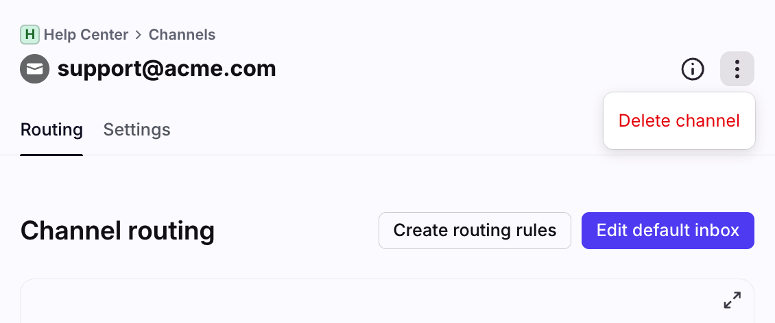 ⚠️ Important: While deleting a channel will not delete your inbox history, any drafts associated with the channel will be deleted. We recommend saving drafts in an external document before deleting the channel.