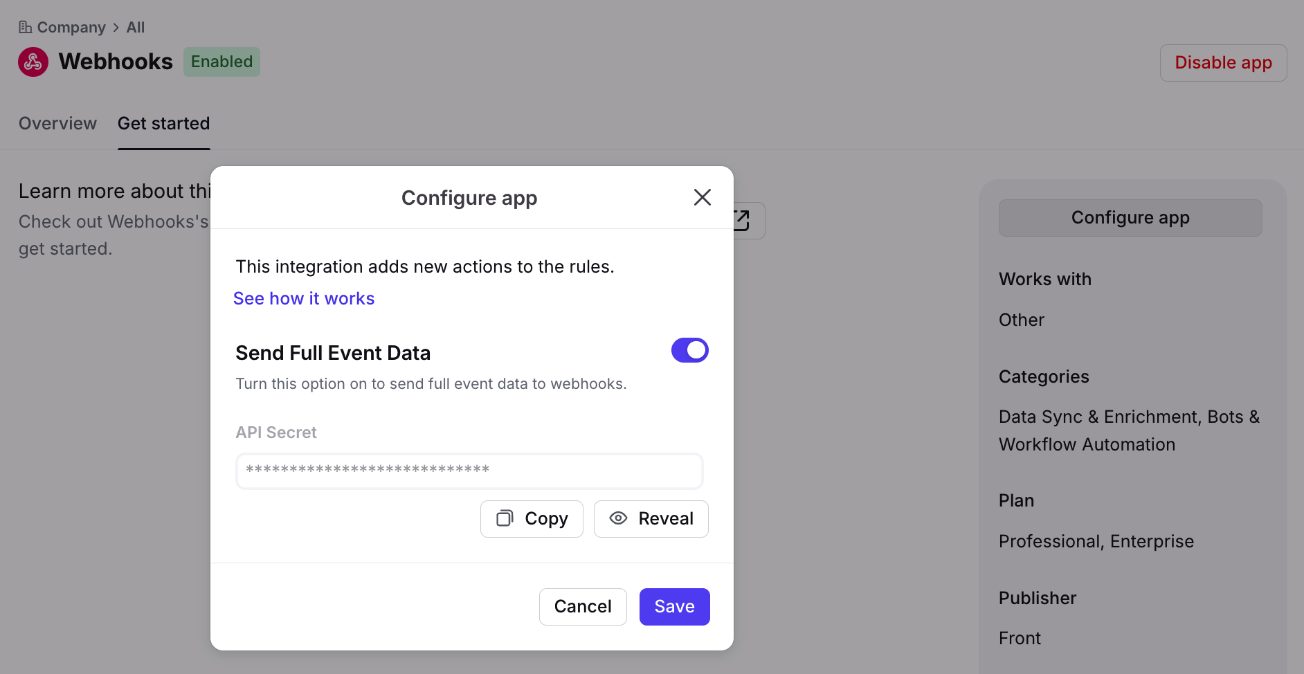 How to enable and use the Webhooks integration