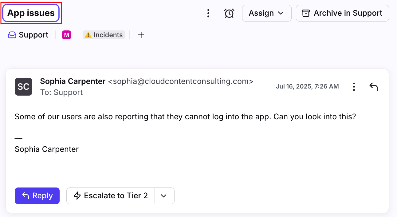 For shared inbox conversations, changing the conversation subject changes the name for all members of the inbox, not just your own personal view.