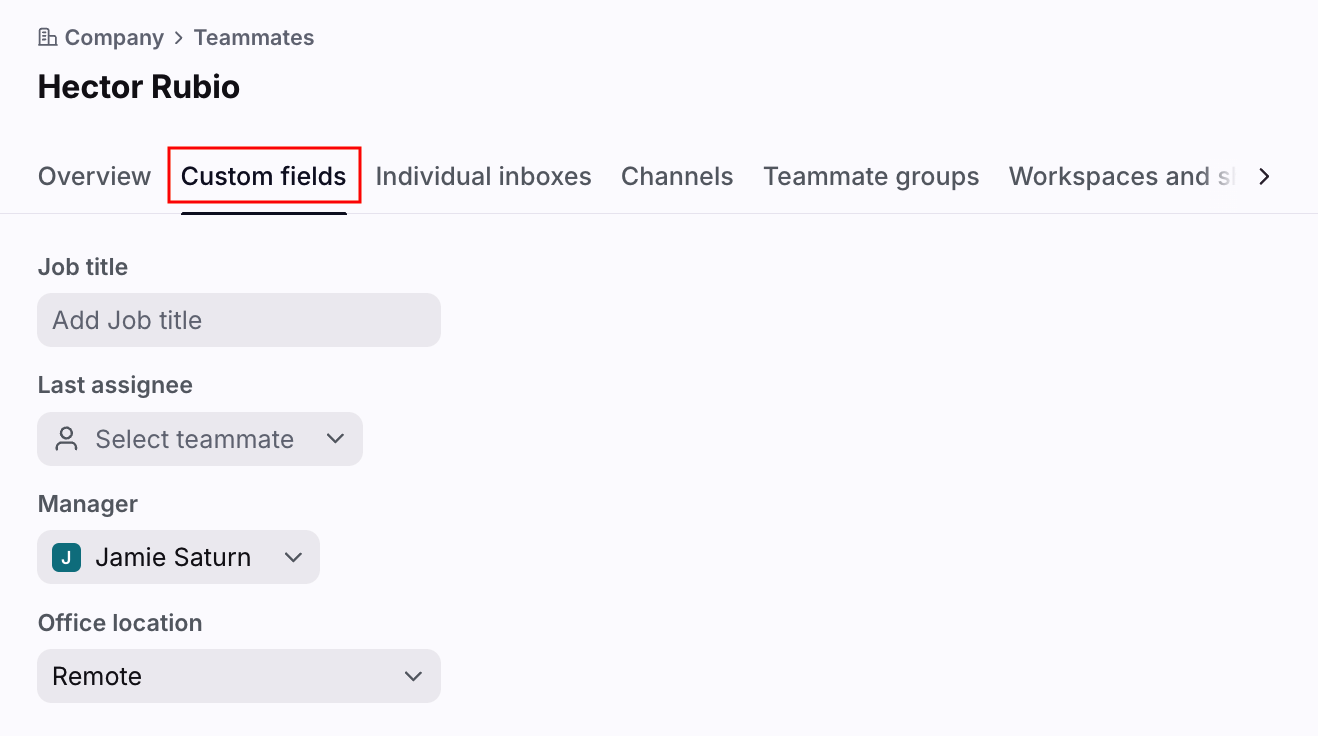 Click Custom fields, then fill in any of the custom fields for the teammate.