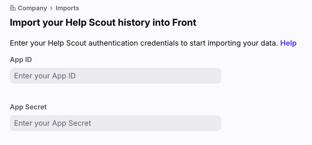 If you previously used Help Scout, you can import your history into Front. You can use Front's importer at no additional cost (steps listed below), or utilize one of our migration partners Help Desk Migration or ClonePartner.