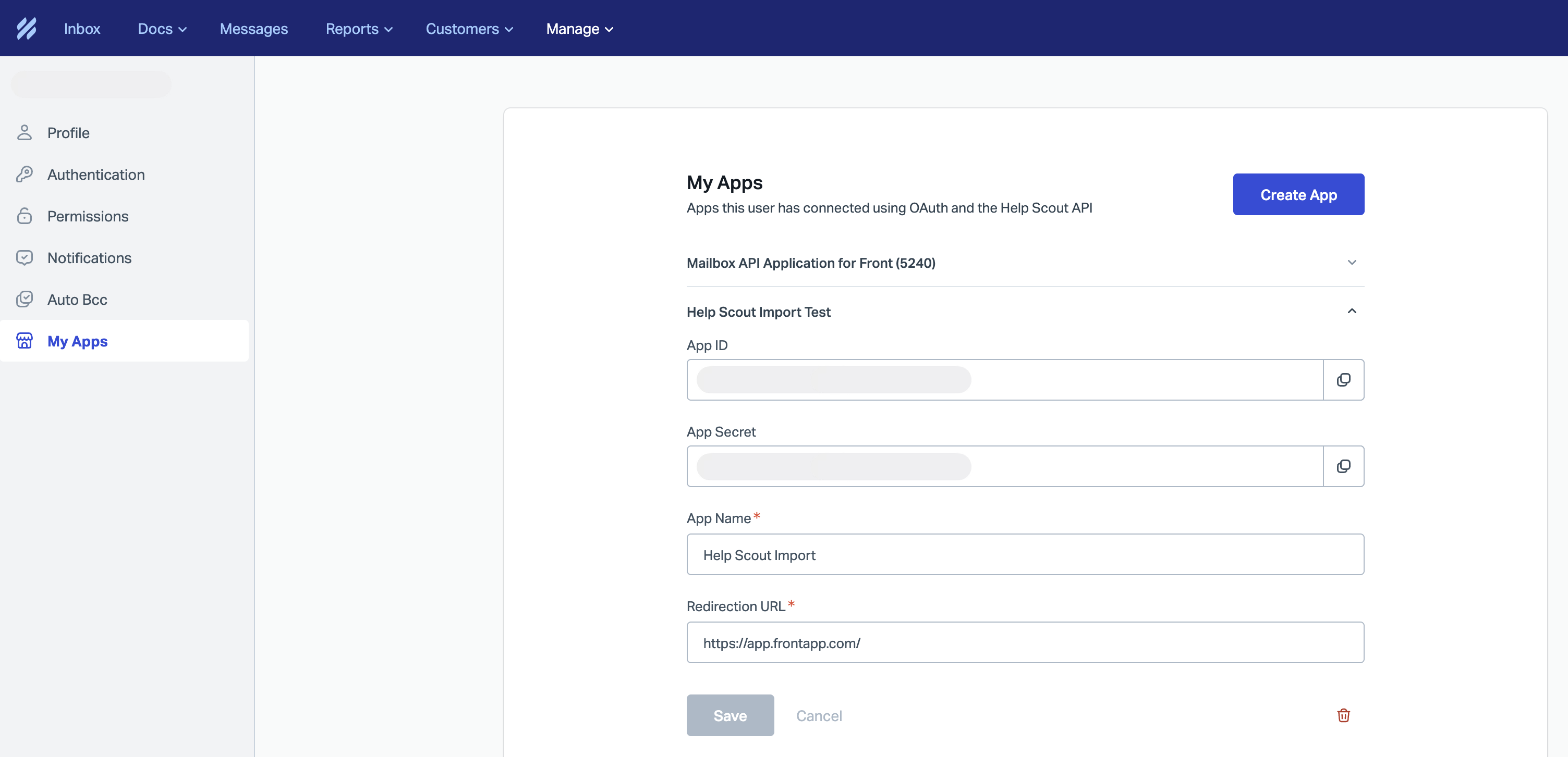 Paste both the App ID and App Secret fields from Help Scout to Front. Click Continue.