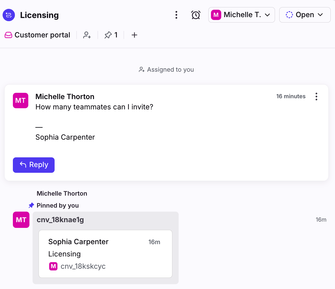 When a visitor submits a request using the portal, you’ll receive a new conversation in your customer portal inbox.