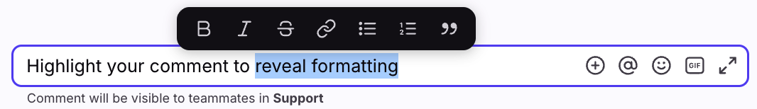 You can easily add formatting like bold, italics, quotes, and more to comments. Simply highlight the text in the comment to reveal the editor.