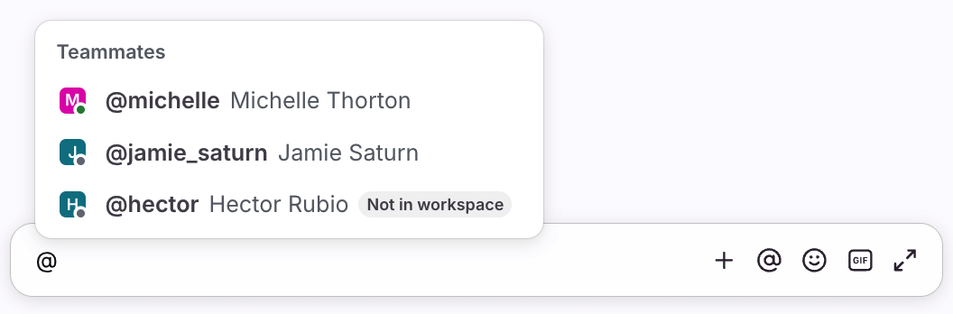If a teammate does not have access to a workspace, they can still be @mentioned, invited, or assigned a conversation inside that workspace. This means that if teammate A has access to workspace Z, and teammate B does not, then teammate A can still @mention teammate B into a conversation in workspace Z.