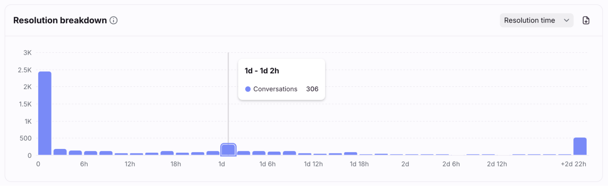 The Resolution breakdown graph allows you to break down resolution metrics into buckets, helping you better understand your team's performance and identify outlier conversations.