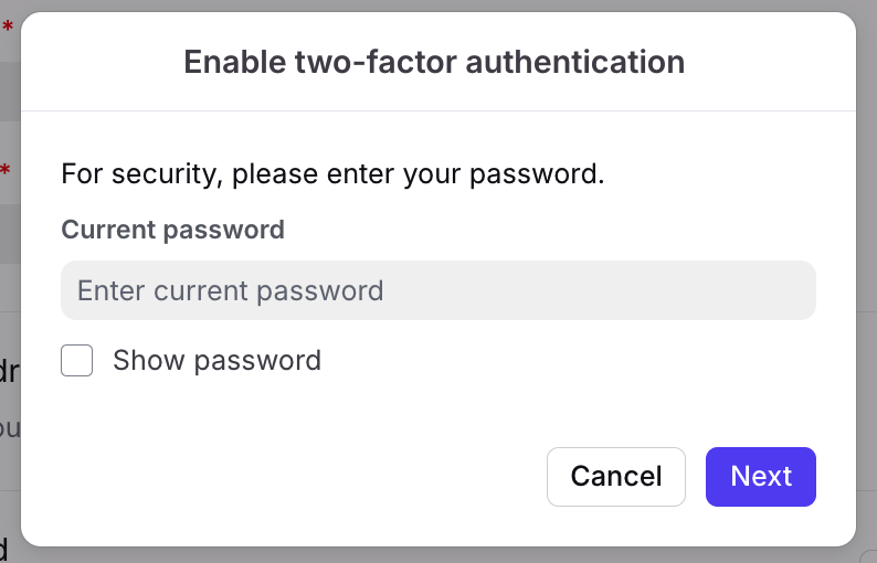 If you ever lose the device that has your authentication app, you can ask a Front admin on your team to disable 2FA for you. As an admin, you will be prompted to enter your own password to disable 2FA.