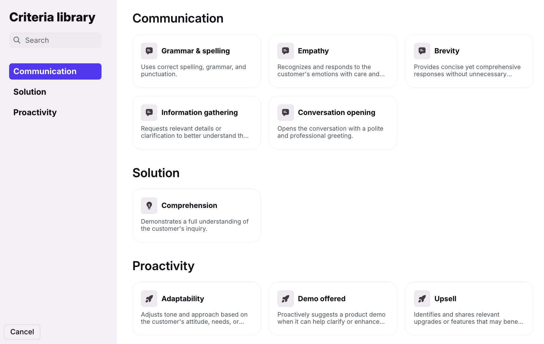 AI automatically scores conversations on the following criteria: