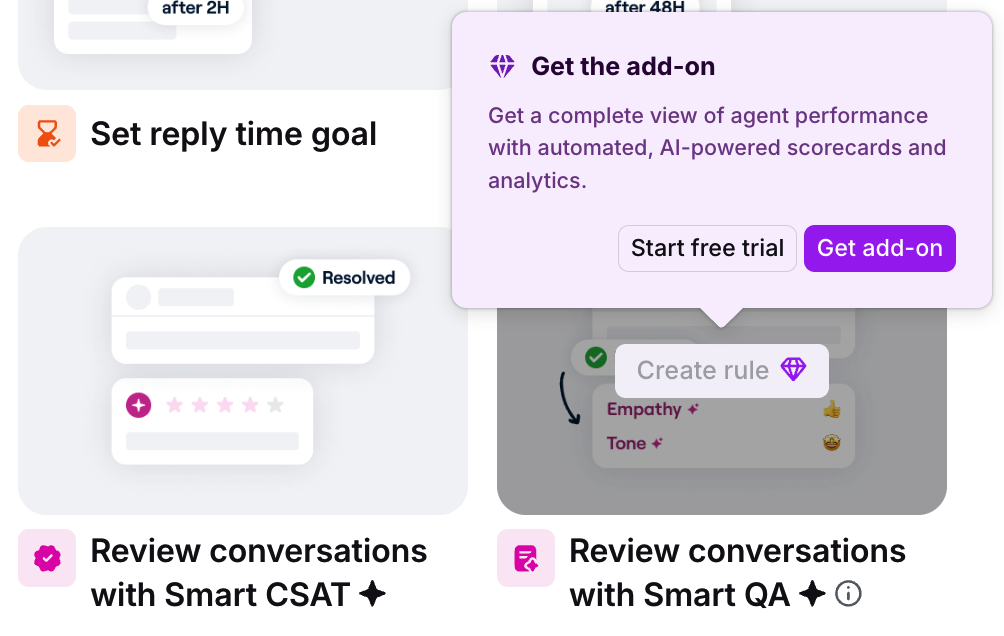 Admins can manually override AI scores from both the conversation sidebar plugin and the Smart QA analytics report.