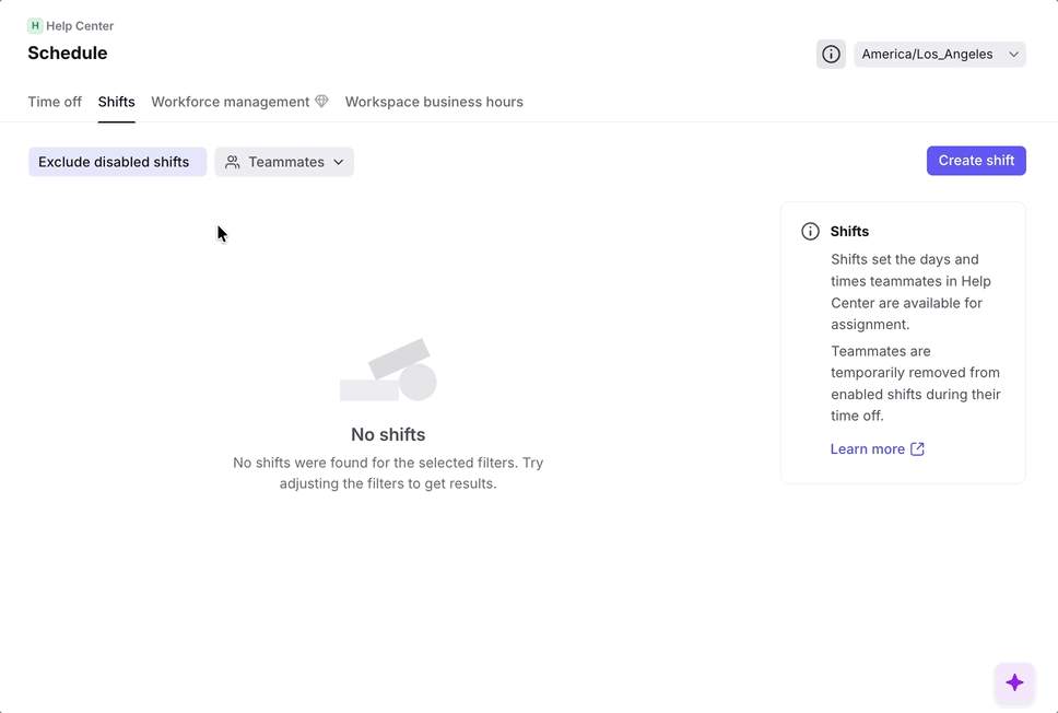 Click Create. You’ll see the new shift in your shift timeline. Teammate assignments as configured in your assignment rules will now change based on this shift.