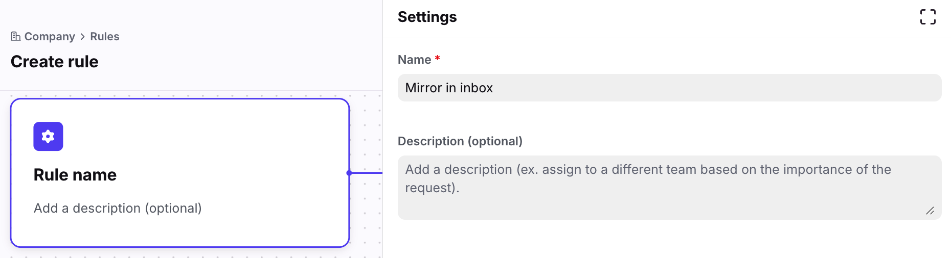 The Mirror in inbox company rule template allows you to make conversations in individual inboxes visible in shared inboxes. The conversation is accessible in both inboxes at the same time, without moving the conversation out of the individual inbox. This is helpful for teams with workflows where customers directly email a specific teammate (like an account manager), but conversations also need to be visible to the entire team via a shared inbox.