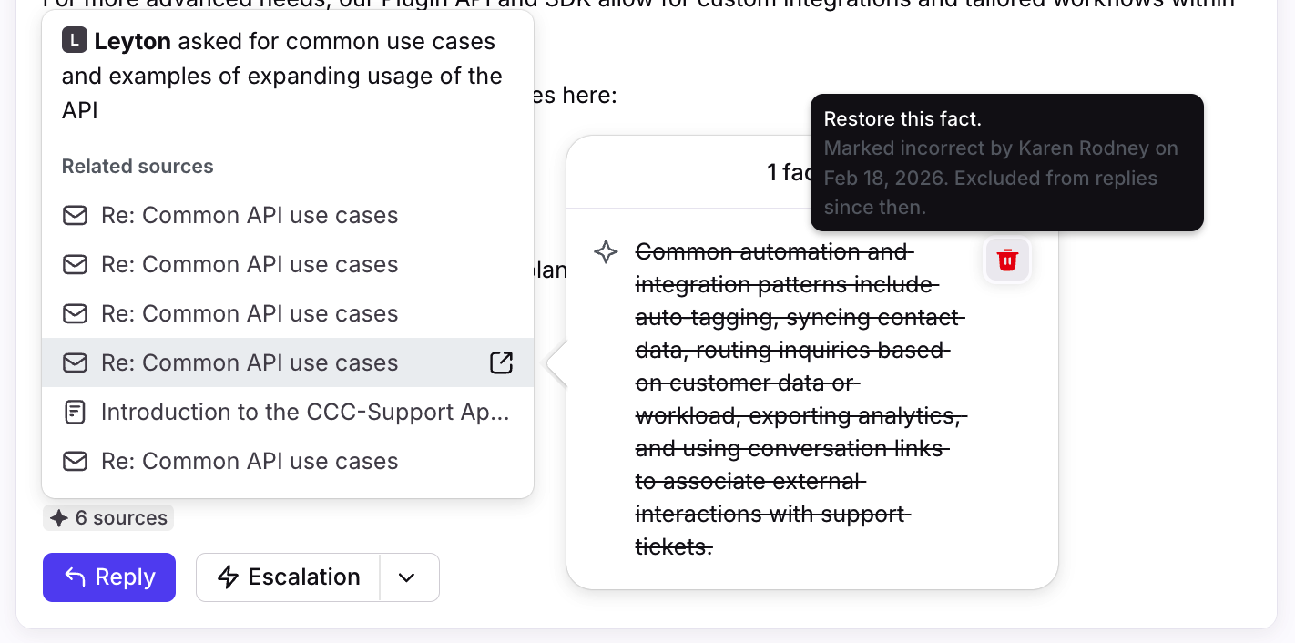 This enhanced context allows the AI to provide more accurate answers and generate replies that sound authentic and unique to your organization.