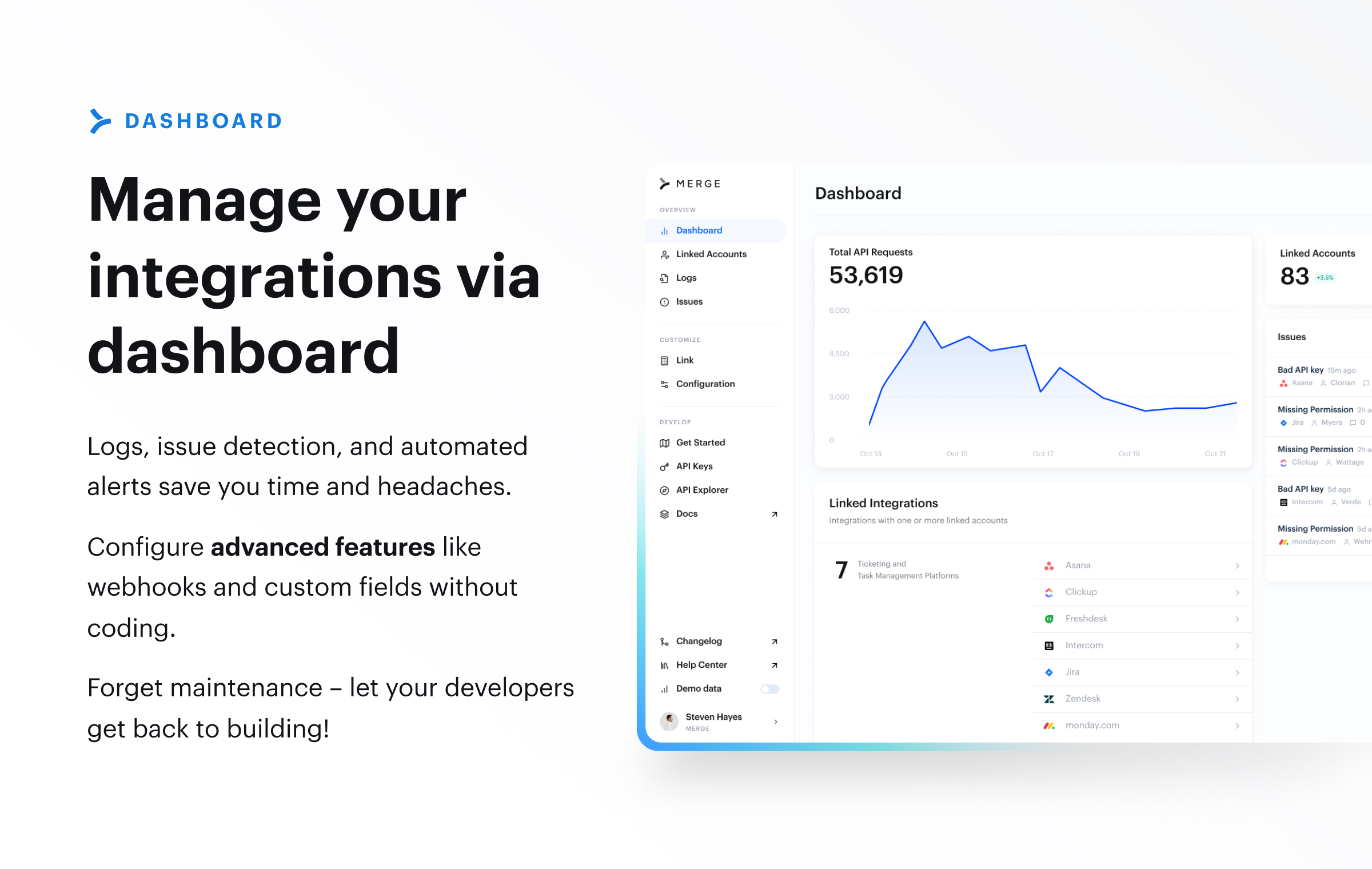 Merge’s core product is a Unified API that connects into Front and dozens of other Ticketing platforms. With Merge, developers integrate just once to provide an entire vertical of integrations to their customers.