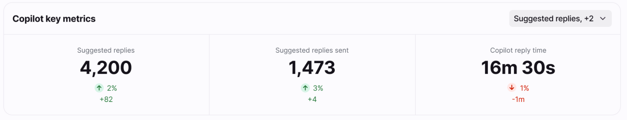 Up to three key metrics cards are featured here to help you understand your Copilot usage at a glance.