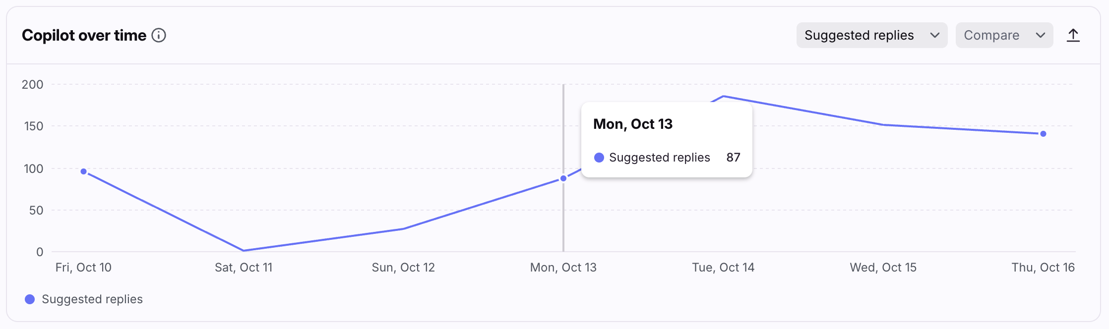 The Copilot over time graph allows you to see peaks or drops to help you identify trends in Copilot usage.