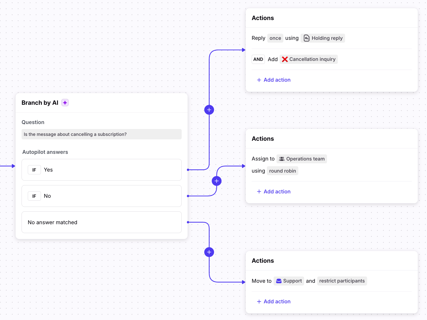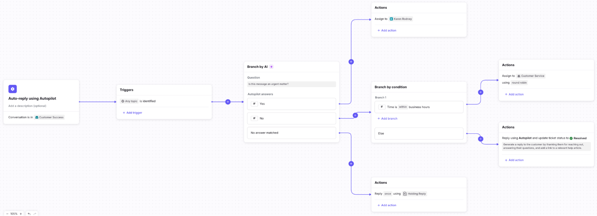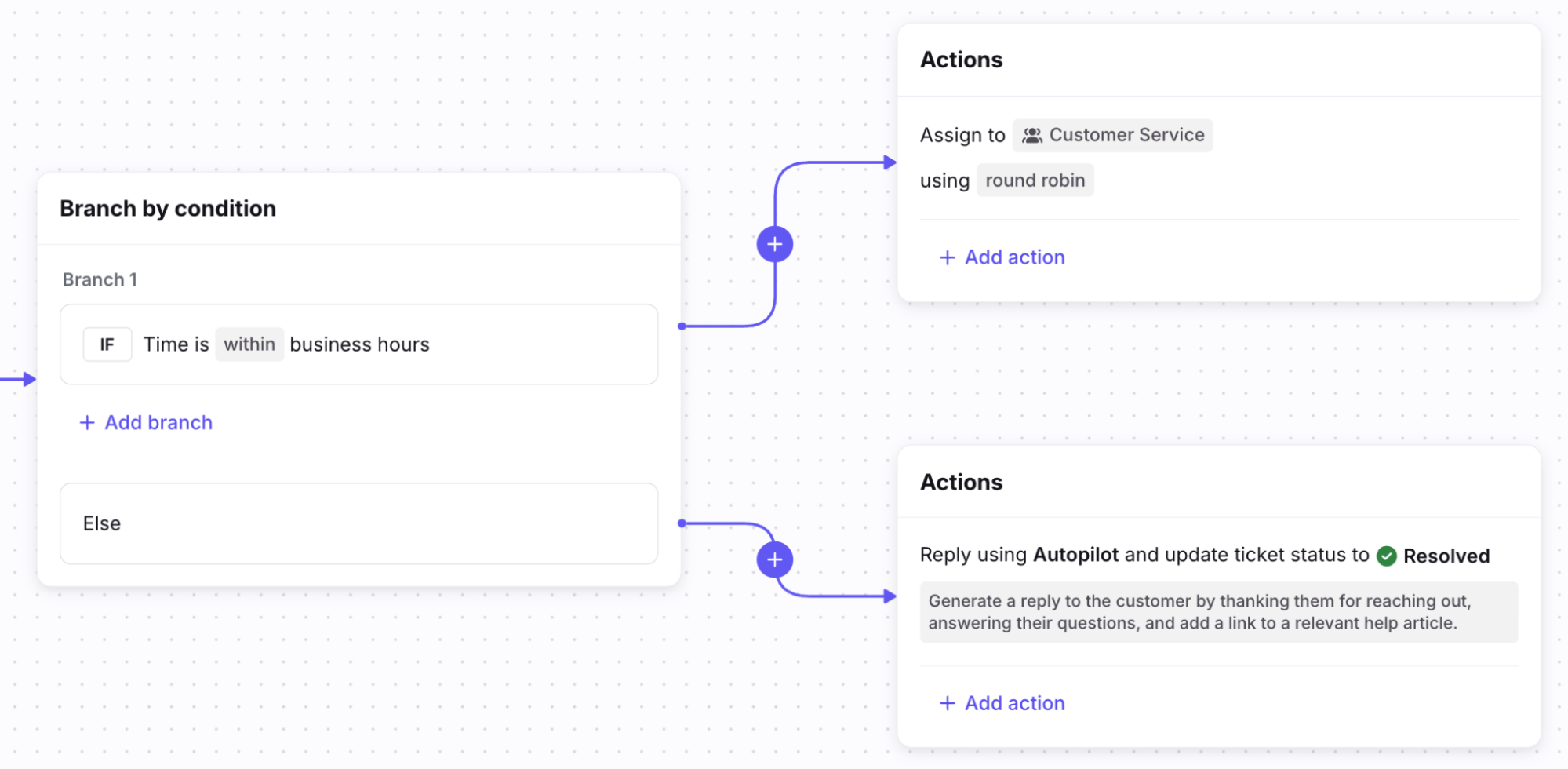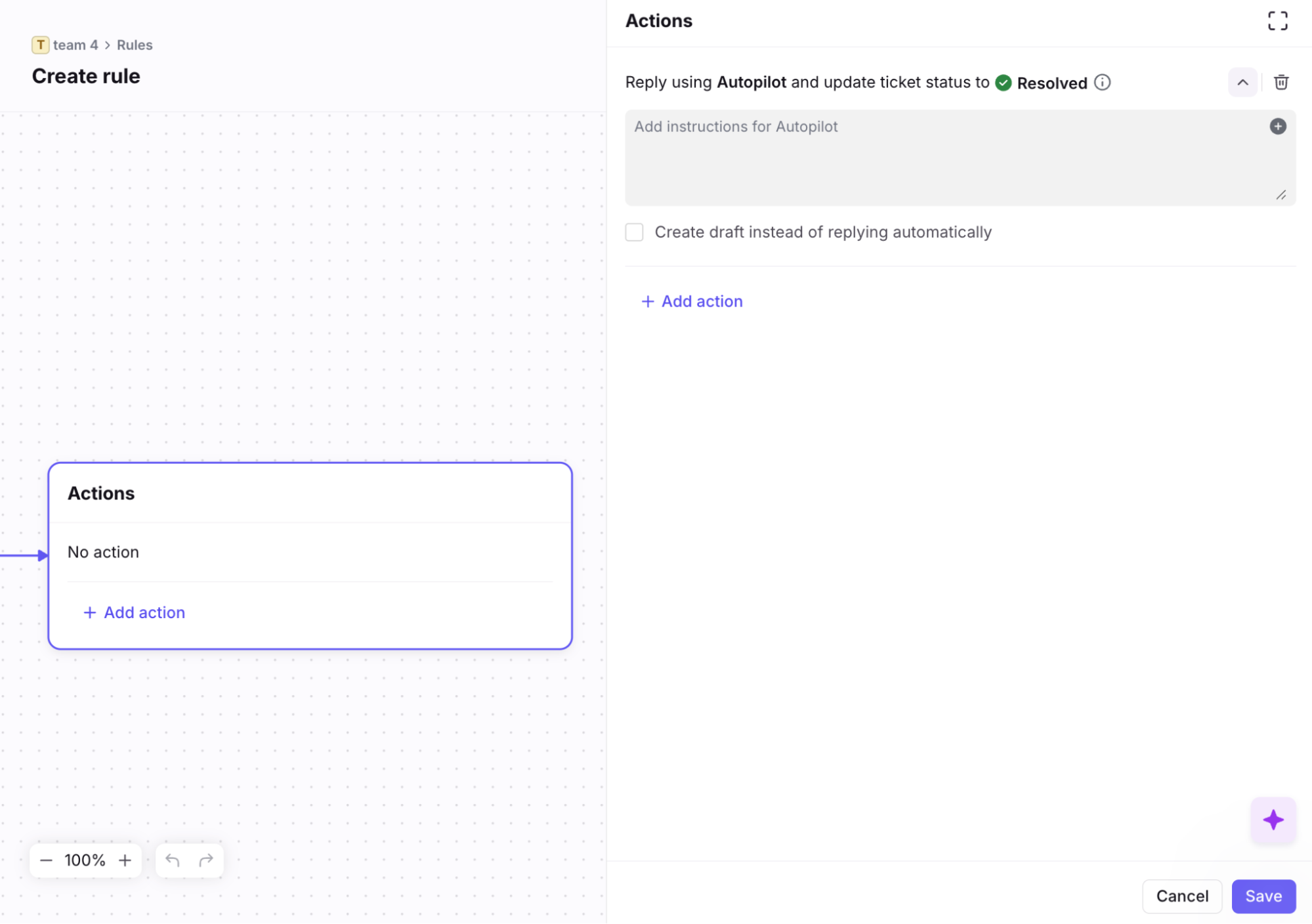 Use the Reply using Autopilot based on instructions rule action to tell AI how you want to automatically reply to and resolve conversations.