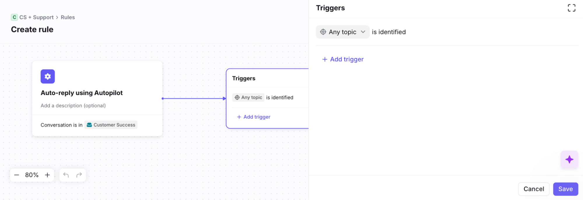 These features can be used outside of the default Autopilot rule based on Topics. The following instructions assume you’re familiar with creating rules.