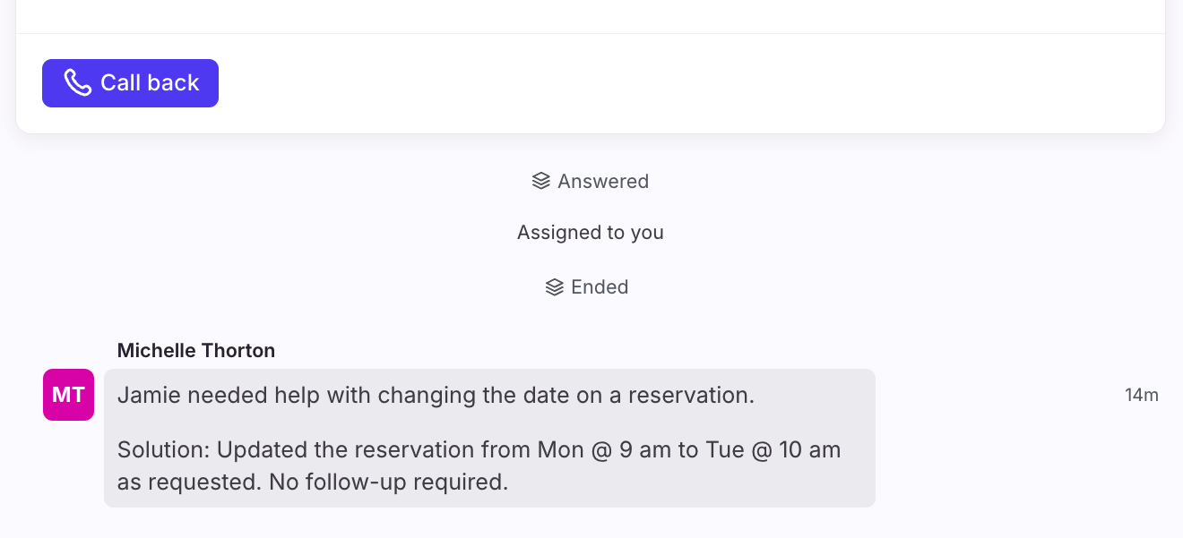 Use Front’s comment feature to take notes after the call. This is useful for adding call summaries, action items, and more.