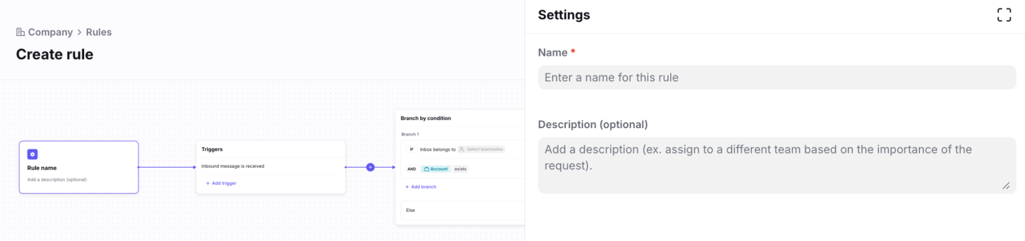 Add a name for your rule, and edit the rule to fit your team’s needs. You can further customize your rule with additional triggers, conditions, and actions.