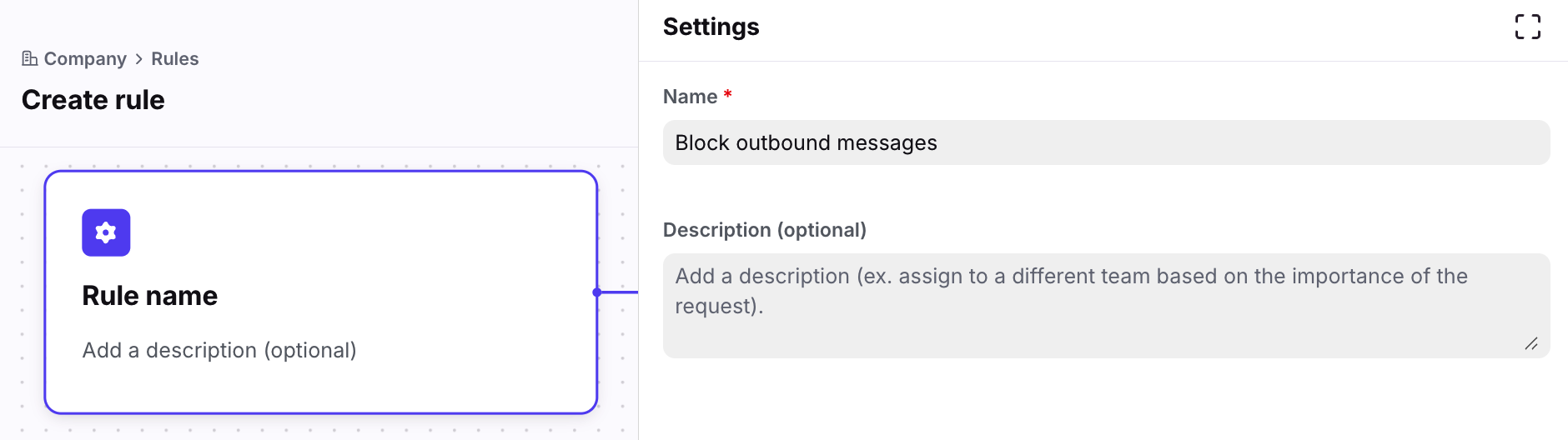 The Block outbound messages company rule template allows admins to add safeguards to prevent outbound messages from being sent under specific conditions. Sent messages will stay in draft mode, and can only be sent when they no longer meet the conditions defined in the rule. This is helpful for teams who want to implement workflows such as: