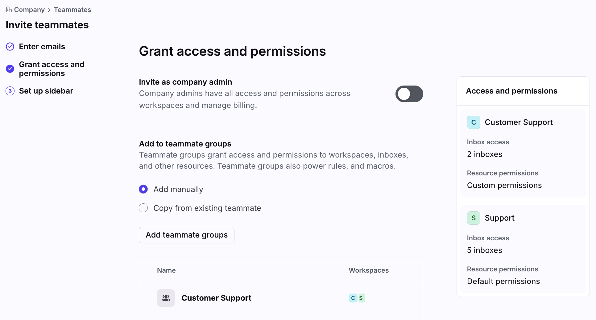 Select a teammate group or copy an existing teammate’s settings to quickly configure new user accounts