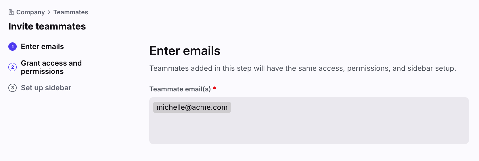 Note: Make sure your teammates don't sign up for their own trial on our website. This will create a new company for them, and you won't be able to add the same users to your company. If a user accidentally creates their own trial, please contact us and we will remove their incorrect account.