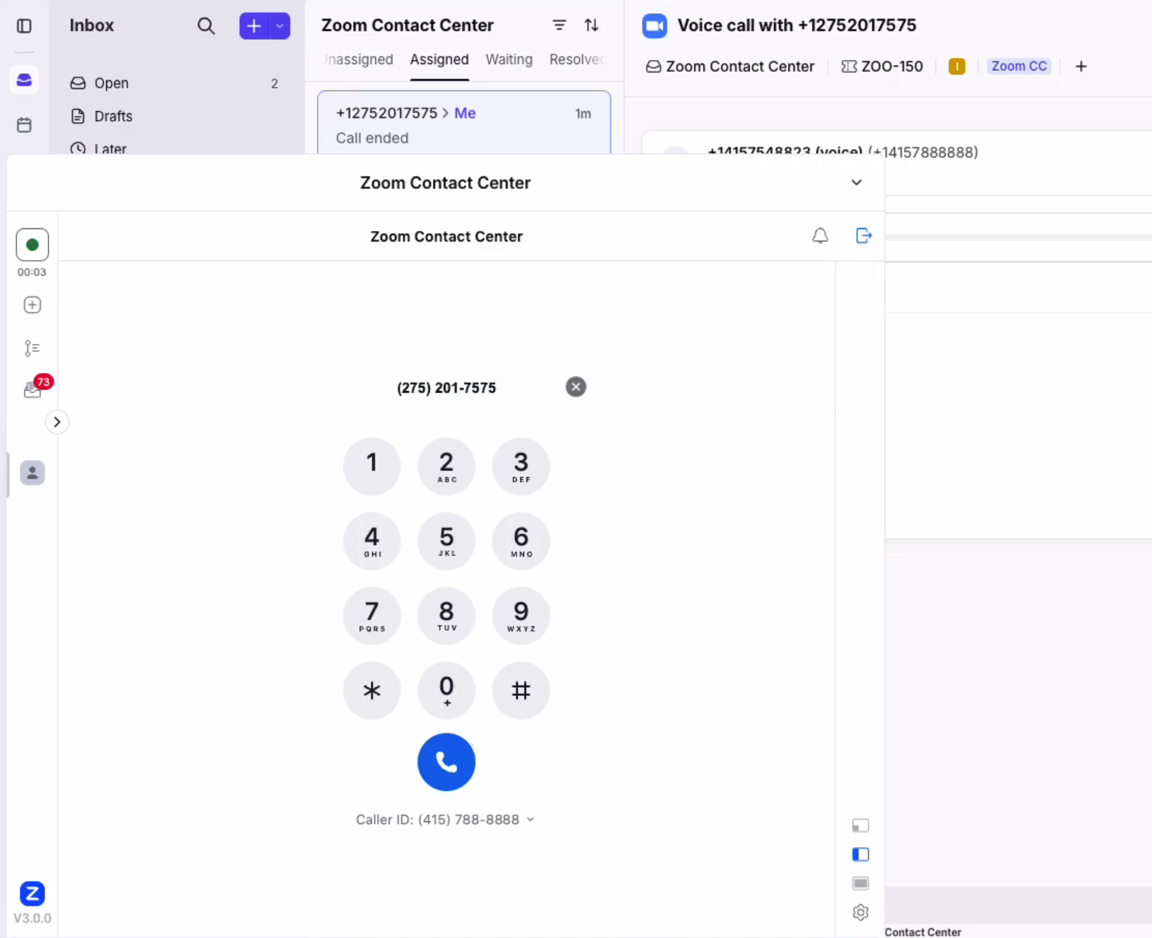 Once a Front admin has enabled the integration, agents can use Zoom Contact Center inside Front.