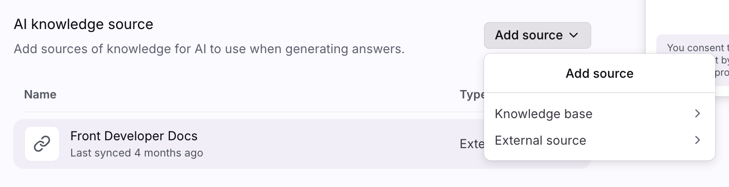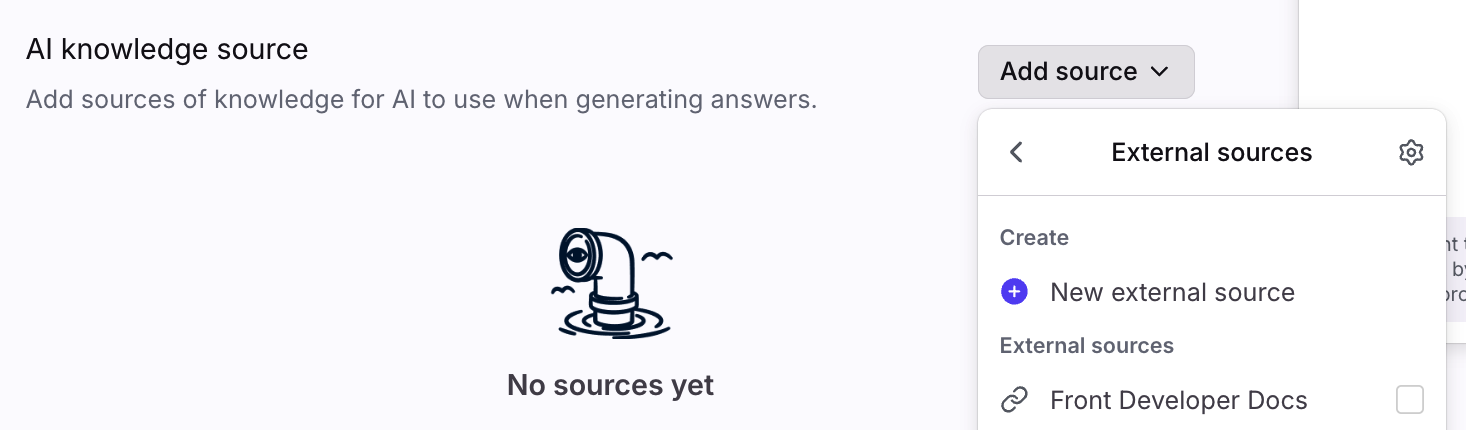 ⚠️ Using a Front knowledge base as the source for AI Answers provides the most reliable performance. See this article to learn how to easily bring your external knowledge source into a Front knowledge base.