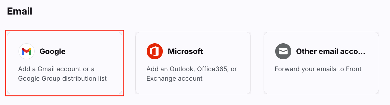 Front access: The person who adds the Google Group needs to be a Front administrator.