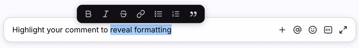 You can easily add formatting like bold, italics, quotes, and more to comments. Simply highlight the text in the comment to reveal the editor.
