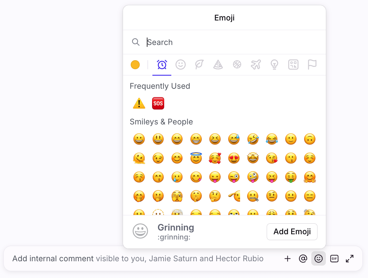 Insert emojis to liven up your comments by clicking the happy face icon, or simply type out the emoji keystrokes and press the space bar.