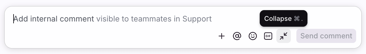 If you'd like to expand the comment bar to have more space for typing, click the Expand icon at the right of the comment editor, or use the Cmd/Ctrl + period (.) keyboard shortcut. Once expanded, click the button again to Collapse the box or use Cmd/Ctrl + period (.) again.